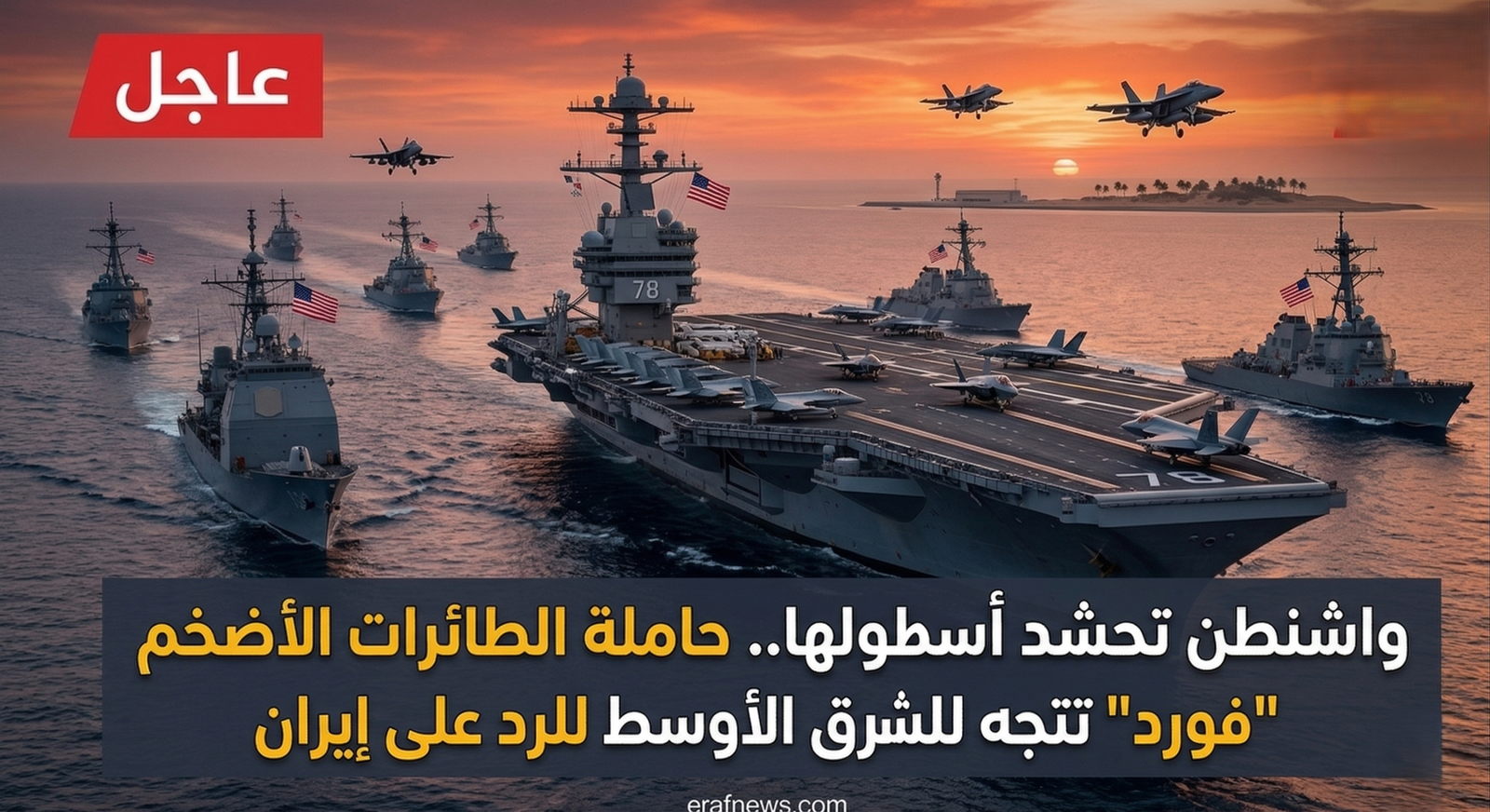 في استعراض ضخم للقوة ورسالة ردع عسكرية أمريكية حاسمة، أعلنت البحرية الأمريكية، اليوم، عن تحرك أكبر قطعة بحرية حربية في العالم باتجاه منطقة الشرق الأوسط، في ظل تصاعد غير مسبوق للتوترات الإقليمية.