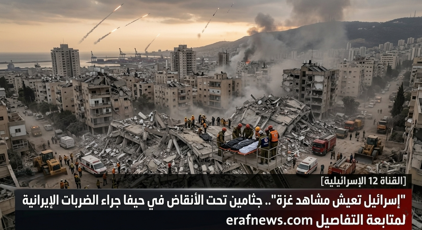 حيث بثت “القناة 12 الإسرائيلية” تقريراً صادماً ومباشراً من قلب مدينة حيفا المدمرة، حمل عنواناً وتوصيفاً يُعد “من المحرمات” في الداخل الإسرائيلي، قائلة بصريح العبارة: “إسرائيل تعيش اليوم مشاهد غزة”. وأكدت القناة سقوط أعداد كبيرة من القتلى الإسرائيليين، مشيرة إلى أن فرق الإنقاذ التابعة لقيادة الجبهة الداخلية تقف عاجزة أمام حجم الدمار، مع استمرار وجود جثامين وعالقين تحت أنقاض الأبراج السكنية التي سُويت بالأرض في حيفا جراء القصف الباليستي العنيف.